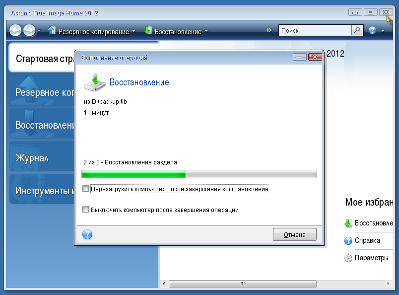 Восстановление данных из резервной копии